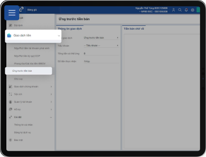 Step 2:Navigate to Menu -> Money Transactions -> Advance Payment on Securities Sales.