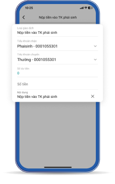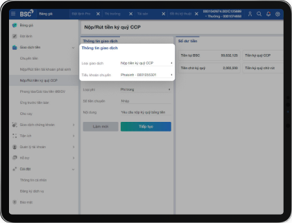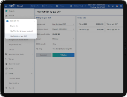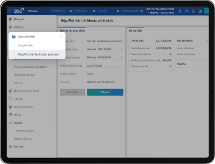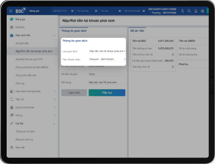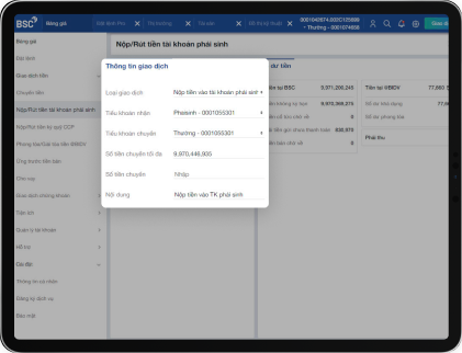 ステップ2:メニューー>現金取引――>デリバテイブ取引口座での入出――>金額、内容などの情報をご入力します。