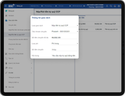 ステップ2:メニューー>現金取引――>デリバテイブ取引口座での保証金の入出――>金額、手数料類、内容などの情報をご入力します。